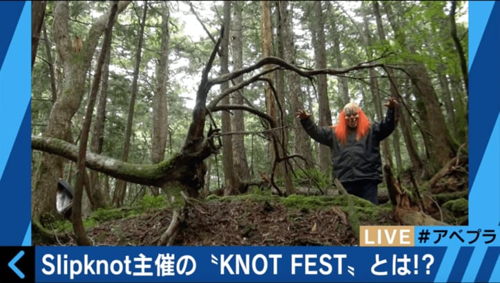 世界的ヘヴィメタバンド「Slipknot」メンバーが富士の樹海を訪れた理由とは 2016/09/15 05:00 拡大する 世界を代表するヘヴィメタルバンド・Slipknot(スリップノット)が今年11月、2年ぶりに音楽フェスティバル「ノットフェス」を開催する。2014年 日本で初開催した際には、2日間で5万人を動員した人気フェスだ。14日放送のAbemaTV『AbemaPrime』には、リーダー・クラウンが出演し、日本、そしてフェスへの想いを熱く語った。「スリップノット」は、メンバー全員がグロテスクなマスクを身につけ、強烈なライブパフォーマンスで、昨年グラミー賞で2部門にノミネート。日本でもサマーソニックなどのフェス出演や来日公演を行うなど人気を集めている。久しぶりの日本について、クラウンは、「日本は大好きで、街も美しいし、また戻ってこれてうれしい」と話す。 続きを読む