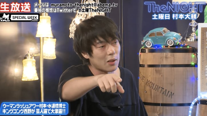 ウーマン村本、NON STYLE・井上に「お前が漫才を語るな!」 2019/03/15 09:36 拡大する Abema TV・Abema SPECIALチャンネルで9月24深夜1時に放送されたトークバラエティ『ウーマンラッシュアワー村本大輔の土曜The NIGHT #12』で、MCのウーマン・村本大輔がNON STYLE・井上についてコメント。その内容が視聴者の注目を集めている。この日、番組では村本が「この二人としゃべりたかった」という水道橋博士(浅草キッド)と西野亮廣(キングコング)が登場。それぞれがお互いに普段感じていることなどについて、独特な緊張感を保ちながらも、ざっくばらんな雰囲気でトークが進められていたが、その中で村本は、お笑いコンビ・NONSTYLEについて「同期からすると、NON STYLEって、石田がすっごいネタを作って、井上はそんなに漫才に対して、正直、愛はないんですよ」と語り、「その漫才を石田が語るならわかるんですよ。井上が語るなよ!っていうのをたぶん思うんですよね」「なんかやり口が…わかんないですけど、大人しいダンナをめちゃくちゃ働かして、嫁がブランドものの服を着ているみたいな感じのコンビのイメージがある」とバッサリ。 続きを読む
