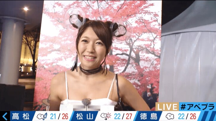AbemaTVにて放映されている報道番組『AbemaPrime』の、先週のお天気コーナーでは、気象予報士の穂川果音が、シルバーウィーク特別編成とし、4バージョンのコスプレを披露した。お天気コーナーで恒例となっている、顔出しパネルは紅葉をモチーフとしたものが用意された。