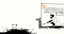 飛び散った黒い絵の具が画面に不思議な模様を描いて、何もなかった真っ白な世界に、先へと続く通路の輪郭が見えてきます。