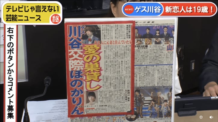 ゲス川谷、19歳新恋人との飲酒デート 芸能リポーター「もう少し待てなかったのか」 2019/10/24 21:28 拡大する タレントのベッキー(32)との不倫騒動がきっかけで5月に離婚した、ロックバンド「ゲスの極み乙女。」の川谷絵音(27)が、新恋人と交際を始めたことが発覚した。お相手は、仮面ライダーゴーストに出演し、高校時代には雑誌『ニコラ』のモデルとしても活躍した、ほのかりん(19)。現在は、NHK・Eテレの『Rの法則』にレギュラー出演しているタレントだ。2人の交際を報じた29日発売の「週刊文春」によると、双方の事務所とも交際の事実を認めており、現在は、川谷が元妻と暮らしていたマンションで半同棲生活を送っているという。 続きを読む