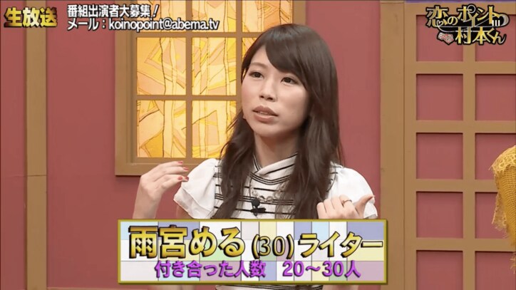 女友達のSNSがきっかけに 「女子が浮気に走る理由」を美人ライターが解説 2019/03/15 09:36 拡大する 『恋のポイント村本くん』(AbemaTV)のレギュラー放送が10月20日22時より開始した。同番組は、偏った恋愛観を持つ男こと、ウーマンラッシュアワー・村本大輔が“恋の猛者”な素人美女たちによる「赤裸々恋愛エピソード」を採点する恋愛トーク番組。過去に特番として2回放送されているが、好評を呼び、今回のレギュラー化に至った。 番組の前半、「男ってバカだなと思ったこと」をテーマにトークを展開。「女の浮気」についてまで話は及んだ。「男はほぼ浮気している。バリバリ仕事ができてイケメンで自慢の旦那さんみたいな人は、女の人も寄ってくるし、(浮気を)割としている」と語る村本。それに対して「女もしてますよ」と断言したのは、ライターの雨宮めるさん。雨宮さんによると、男性のように狩猟本能のない女性は、1人の男性とうまくいっている時には浮気はしないものの、満足していない部分がある時に浮気をするのだそう。 続きを読む