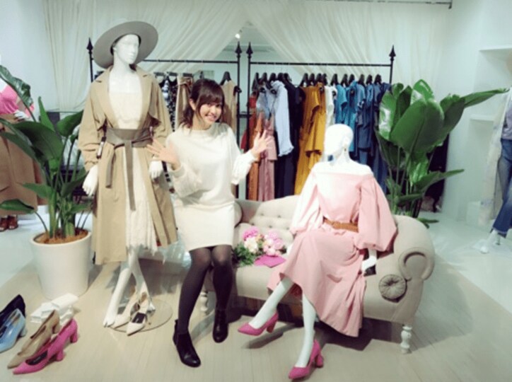 新作アイテムに心をときめかせ、「マネキンの中に入るわたし。」と展示会場のマネキンに混ざる形でポーズを決めたり、「ピンク多めだけど微妙に色が違うし全部大人っぽくてツボ。春届くの楽しみだなあ」と早くも、春が待ち遠しいといったご様子だ。