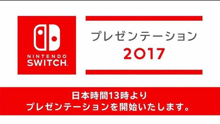 【生中継】任天堂スイッチ プレゼンテーション 2019/10/24 21:28 拡大する 13日、任天堂が3月に発売する予定の新型ゲーム機を紹介するイベント「 #NintendoSwitch プレゼンテーション2017」が開催される。 AbemaTVでは、この模様を13時からAbemaNews緊急チャンネルで生中継する。中継URL:https://abema.tv/now-on-air/news-emergency 続きを読む