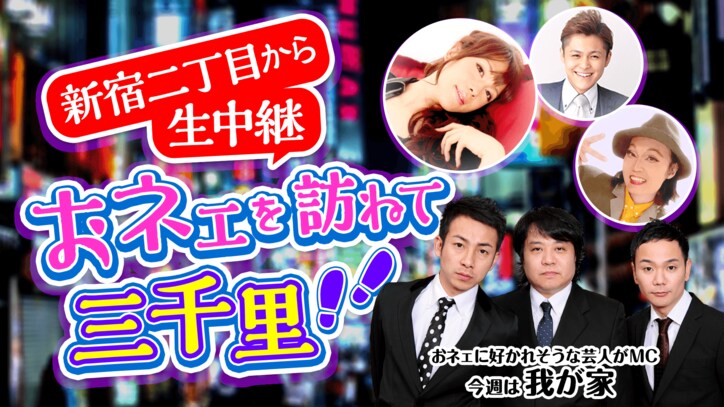 新番組『おネェを訪ねて三千里』放送決定 人気ゲイバーのリアルなおもてなしの中身とは? 2019/03/15 09:36 拡大する AbemaTVは、AbemaSPECIALチャンネルにて、新レギュラー番組『新宿2丁目から生中継! おネェを訪ねて三千里』を1月19日(木)夜9時から放送開始することを決定いした。 同番組では、300軒以上あると言われるゲイバーの聖地・新宿2丁目から、ゲイバーが好きな人やゲイバーで働く人が思う「本当に良いゲイバー」を生中継で巡っていく。紹介されるお店の店員が、毎回登場する進行役ゲストに制限時間10分でその店ならではのおもてなしを披露。10分後、視聴者からの投票で「次の店に行く」か「延長する」を決定!「次の店に行く」が過半数を超えると、強制的に次のお店へ移動していく。リアルなゲイバーの様子が見られるので、普段なかなかゲイバーに遊びに行けない人でも、まるでゲイバーにいるような感覚で楽しめる。また、ゲイバーに抵抗のある人や、どんなところか分からず行くのを躊躇している人も、この番組を見て興味を持てるかもしれない。 続きを読む