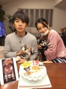 ケーキは祐佳が用意したという似顔絵入りのもので、今月9日に亡くなった愛犬のココアちゃんの顔も描かれている。「9日に亡くなったココアも一緒に隆之介の誕生日を祝いました。(隆之介の顔が、ヤバイ…何故ならば…写真で分かるよう、ココアを思い(ノД)だから。本当、優男すぎる。)」と、祐佳は語っており、ケーキの左下にはしっかりココアちゃんの姿が。そんな隆之介の優しさに祐佳も結実も家族ながらメロメロのようだった。
