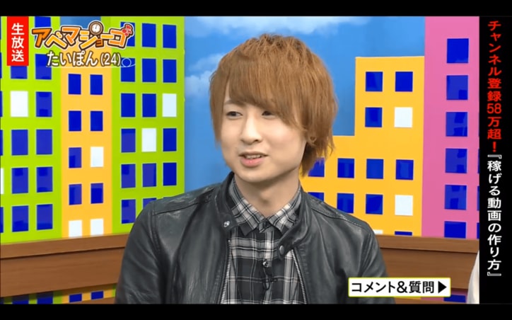 アダルティックYouTuber・たいぽん、年収は500万円より全然上? 「一般的なサラリーマン以上」と告白 2019/03/15 09:36 拡大する 13日に放送されたAbemaTVのトーク番組『アベマショーゴ ~キテる人フカボリSHOW』に、人気YouTuber(ユーチューバー)のたいぽん(24)がゲスト出演。YouTuberになったきっかけや、収入について語った。 たいぽんはチャンネル登録社数58万人を超える人気YouTuber。「ウイダーinゼリーを10秒で飲みきれるかやってみた」などのチャレンジ系だけではなく、「コンドーム0.01ミリvs0.02ミリどっちが耐久度あるか検証」など、アダルト系のネタにも挑戦する「アダルティックYouTuber」としても人気を博している。 続きを読む