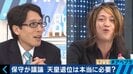 古谷氏は「伝統は変わっていくものとおっしゃったのに、この130年の議論だけを重視するのか。それも変わるのではないか」と竹田氏に反論。「政府の方針は仕方ないとも思うが、基本的には皇室典範の改正まで踏み込み、女系天皇・女性天皇も認めるべきではないか。周りの人々が忖度して、天皇陛下の"あるべき姿"に持っていこうとするのは違うと思う」とした。