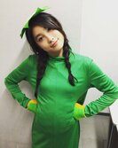 体を斜めに写した写真も投稿し、「カッパは横から見ると、かなりおなかがフンワカしているのです」と説明。「今年のハロウィン、ぜひぜひカッパはいかがでしょうか 本気でおすすめ!」とハロウィンでのカッパ仮装をすすめた。