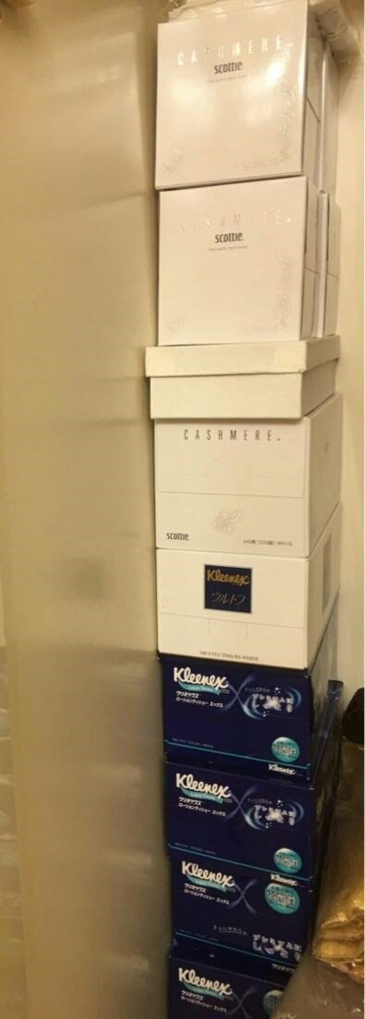 これを見たファンからは「それにしてもたくさんのティシュの箱、高級なティシュばかりで眩しいです」「トイレロールの残量がぁ…アワアワですが…」「私はトイレットペーパーは 多めにストックしてあります。」などたくさんのコメントが寄せられた。