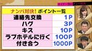 そして2時間後、なんとその女性と東は見事ラブホテルへ。指原と小杉はあまりの事態に「嘘でしょ」というのがやっとの様子。吉田は「歴史に残る逆転劇」と東を称え、「普通、テレビだったら、ホテル入る直前で“ゴメン!企画だった!”って言うものだけど……最後までやったんか」と質問。東は「はい」と即答し、「僕、誰かが不幸になるのが嫌なので、バラしたくなくて」「付き合ったら1000ポイントと言われているので、付き合えないかなって」とさらにポイントを狙っていることを告白。ブラマヨの2人から「もういいやろ!」と突っ込まれていた。
