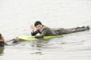 この日更新されたブログでは、第一話で稲見朗(小栗)が新幹線から飛び降りて川の中から浮かび上がる体当たりなアクションシーンのの撮影の為に川の、“ボードに乗って押されて”真ん中へ移動しなければいけなかったという撮影秘話が明かされ、その際のオフショットが公開された。