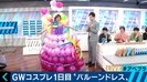 3日は制作に1日を要したという、400本近いバルーンからなるドレスで登場。「着る時にキュルキュルが音がして、歩く度に割れたりする」と説明。いくつものバルーンを破裂させながら天気を読み上げた。