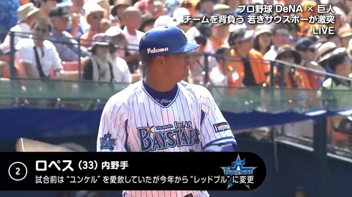 元メジャーリーガー岡島秀樹氏 MLB時代の横浜DeNAロペスに「もっと全然やせていた」 2019/03/15 09:36 拡大する 日本、アメリカ両国で各球団を渡り歩いた元プロ野球選手の岡島秀樹氏(41)が、横浜DeNAホセ・ロペス内野手(33)について、メジャーリーグ時代は「もっと全然やせていました」と当時の様子を明かした。 5月21日に横浜DeNA対巨人の9回戦で、AbemaTVの中継で解説を担当。横浜DeNA、巨人両方に在籍したこともある岡島氏は、ロペスとメジャーリーグ時代に対戦したことがあるという。主砲の筒香嘉智外野手(25)が股関節の違和感のため4試合連続で欠場する中、4番を務めている助っ人について「彼は僕がボストンにいたときにシアトルで戦ったことがあるんです。当時からいいバッターでしたが、今よりもっとやせていましたよ」とコメントした。 続きを読む