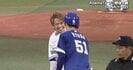 笑顔でマウンドに登った諸星は、ダイナミックなフォームから投げ込むと、ボールは京田へまっしぐら。京田も必死に避けなかったためか、ボールは右足付近へと当たった。これにはベンチで様子を見ていたラミレス監督も大笑い。諸星と京田の2人は、その後笑顔で握手を交わしていた。球速も遅かったためか、京田も痛がる様子はまったく見せなかった。