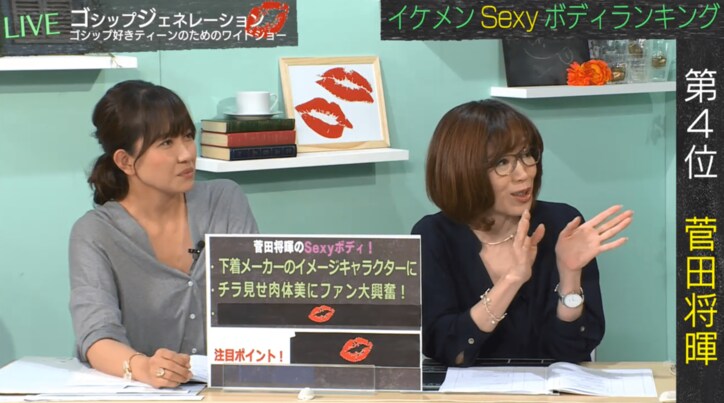 菅田将暉の下着写真 女性芸能リポーターの注目ポイントは「フォルムがくっきり」 2019/10/24 21:28 拡大する AbemaTV(アベマTV)にて毎週月曜日18時~放送中のゴシップ情報番組『ゴシップジェネレーション』の26日放送回は、「イケメン芸能人スペシャル」。芸能リポーターの菊池真由子氏(40)と駒井千佳子氏(51)が、「一度は拝んで欲しい!Sexyすぎるイケメンボディランキング!!」を発表した。 これまでファッション誌などで公開されたイケメンのセクシーボディをランキング形式で紹介。第5位は「山下智久の Sexy ボディ!」だったが、第4位は菅田将暉。 続きを読む