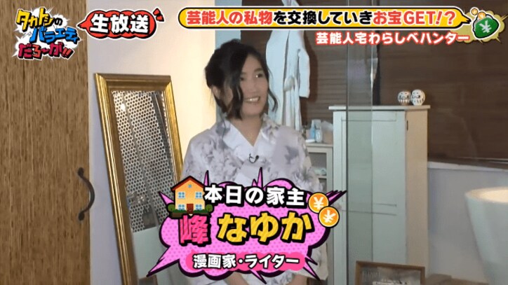 AbemaTV(アベマTV)で7月10日放送の『タカトシのバラエティーだろ~が!!』(毎週月曜・20時から放送)で、お笑いコンビ・タカアンドトシが、漫画家で元セクシー女優の峰なゆか(32)の自宅を訪問。まるでラブホテルのような部屋を紹介した。