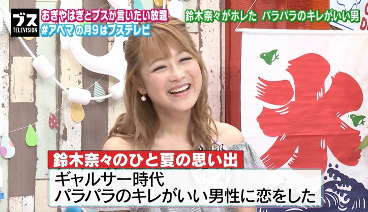 鈴木奈々、ギャル男が好きだった過去「パラパラのキレがいい男性に恋をした」 2019/03/15 09:36 拡大する 24日、おぎやはぎの小木博明と矢作兼がAbemaTV(アベマTV)でMCを務めるトークバラエティ『おぎやはぎの「ブス」テレビ』(毎週月曜21時~)が放送され、タレント・鈴木奈々が“若気の至り”で恋に落ちたエピソードを語った。 かつてギャルサーに入っていたという鈴木だが、その当時は「パラパラ」が流行っており、鈴木は「パラパラのキレがいい男性に恋をした」と告白。矢作は「好きになる理由がバカすぎる」とあきれたが、鈴木は「♪生きてる価値が 見い出せない!」とその男性風にパラパラを実演。矢作から「奈々ちゃんはチャラい人をあまり好きじゃなさそうだけど?」と言われると、「昔はやっぱり、ギャル男やヤンキー系が好きでしたね」「結婚した人は一番真面目な人」「そこを通りこえて、今の旦那」と語った。 続きを読む