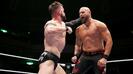 そして試合の内容で一番盛り上がりを見せたのはフィン・ベイラーVSカール・アンダーソンの元B.Cメンバー同士の対決でした!!新日本時代にはプリンスデヴィットでお馴染みのベイラーも長いリハビリを終えて最近は第一線で大活躍中ですが、アンダーソンもWWEでもTHE CLUBとしてギャローズと大暴れしています!!因みに元パートナーのバーナードは現在NXTパフォーマンスセンターのコーチだとか…と、話が逸れましたが試合開始と同時にアンダーソンがいきなりB.Cメンバーお馴染みのハンドサインを見せてベイラーが応じる所に攻撃を仕掛ける常套手段。場外でもギャローズが搔きまわす!!やはりこの2人は良いチームだな…