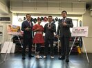 (所属するシーザージムでの会見。榊原実行委員長、高田本部長に加えシュートボクシングのシーザー武志会長も出席)
