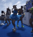 水鉄砲やウォーターキャノン砲による水しぶきが大量に降りかかる中、高速スピンやローラーダンスを見事に披露するSpindle。ピンチをチャンスにかえ、約35分の出演をノンストップで盛り上げ続けた。