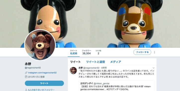 永野、ネットで話題の貧乏話について“嘘”を告白「話を盛ってます」「前も怒られてる」 2019/10/24 21:28 拡大する 永野公式Twitterよりスクリーンショット お笑いタレントの永野が、『日刊ゲンダイDIGITAL』に掲載されている自身のインタビュー記事で、話を大げさにしてしまったことを告白している。 「自力で売れたから誰にも貸し借りがない…」のラインは話を盛ってます。インタビューされて嬉しくて孤高の感じを出したかったのを覚えてます。前も同じミスをして怒られてるんですよ笑 あとは本当の話です。 https://t.co/CXMkeLONZ2 続きを読む
