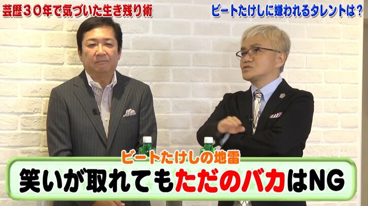 「ビートたけしはバカが嫌い」水道橋博士、師匠へのNG行為を語る 2019/03/15 09:36 拡大する 弱肉強食の芸能界で生き残っていくのは至難の業。芸能界の第一線で活躍する先輩芸能人が講師となり、その生き残り術を次世代に教える番組AbemaTV(アベマTV)『芸能義塾大学』9月7日放送回には、結成30年を迎えた漫才コンビ・浅草キッドの水道橋博士が出演し、生き残り術を徹底解説した。 “生徒”は、ギャルのカリスマ・今井華、グラビア、女優と活躍の幅を広げる都丸紗也華、可愛すぎるビールの売り子でJDモデル・ほのか、「奇跡体験!アンビリバボー」(フジテレビ系)準レギュラーの座を獲得している入矢麻衣、バラエティタレントの山地まり。 続きを読む