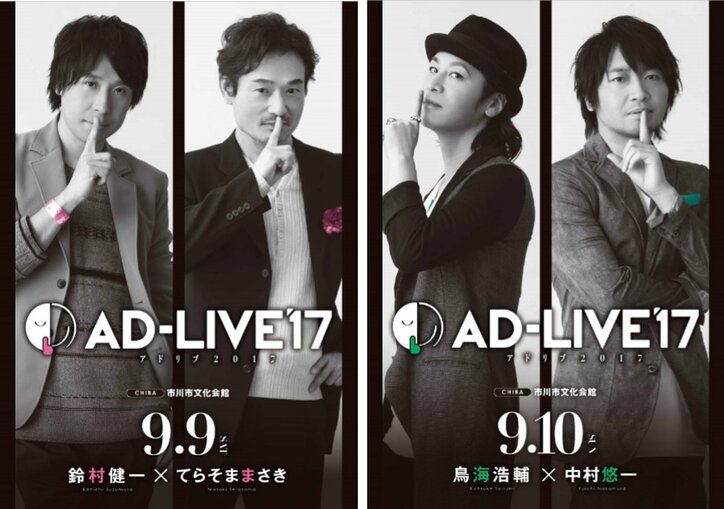人気声優が90分間アドリブで挑んだ唯一無二の舞台劇「AD-LIVE 2017」パッケージ発売決定 2019/03/15 09:36 拡大する 全12公演、全て異なる世界観・シナリオという過去にない挑戦作「AD-LIVE 2017」。9月9日(土)・9月10日(日)と千葉公演が上演され、既にファンの中で話題沸騰となっている中、東京公演・大阪公演を前に「AD-LIVE 2017」全公演のパッケージ発売が決定した。 アニメイト限定版は通常版にファン必見の特典DVD(公演終了直後の出演者による対談「AD-LIVE 2017 CAST After Talk」他)がついたものとなる。 続きを読む 2026年冬アニメ(1月クール) 作品情報 もっとみる(67) デッドアカウント 葬送のフリーレン 2期 転生したらドラゴンの卵だった 地獄楽 第2期 メダリスト 第2期 火喰鳥 羽州ぼろ鳶組