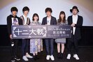 9月16日(土)に新宿バルト9にて、テレビアニメ「十二大戦」の先行上映会&トークショーが行われた。先行上映会では、第1話と第2話をひと足先に楽しむことができた。また、上映前に開催されたトークショーでは、寝住(ねずみ)役・堀江瞬、失井(うしい)役・梅原裕一郎、迂々真(ううま)役・緑川光、異能肉(いのうのしし)役・日笠陽子四人の戦士と、審判役のドゥデキャプルを演じる安元洋貴が登壇。ストーリーやキャラクターの見どころなどをたっぷりと語った。そんなトークショーの模様をお届けする。