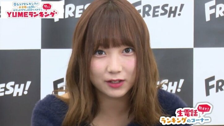 夢アドFカップ京佳、ファンにバストより瞳を褒められ番組中に大照れ 2019/03/15 09:37 拡大する 夢みるアドレセンスの最年少メンバーでFカップの京佳が、番組内で行われたファンとの生電話で、バストよりも瞳が魅力と褒められ、顔を赤らめて大照れした。 10月5日スタートの映像配信プラットフォームFRESH!の公式チャンネルで、「夢みるアドレセンスの王様のお願いカウントダウン王国ベストテン~略してYUMEランキング~」に、メンバー随一の胸の大きさを持つ京佳が登場した。 「あなたしか知らないランキング」のコーナーで、“京佳推し”のファンが生電話で出演。そのファンが、自身が作った“京佳の魅力ランキングベスト3”を発表しようとすると、京佳は憂いの表情を浮かべ、「どうせその中におっぱい入ってるんだろうなぁ」と嘆いた。 続きを読む