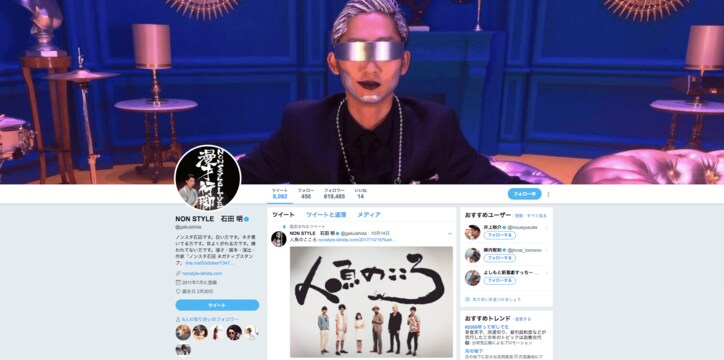 NON STYLE、若手時代と近影の比較ショットを公開 2人のギャップにファン「どっちも好き」 2019/10/24 21:28 拡大する 石田明公式Twitterよりスクリーンショット お笑いコンビ・NON STYLEの石田明が18日、自身のTwitterを更新。相方・井上裕介との若かりし頃の2ショットを公開し、現在とのギャップが反響を呼んでいる。 これが老いです。老い。 pic.twitter.com/Ni4T4xRECw 同日、石田は「これが老いです。老い。」とコメントし、若手時代と近影と思える写真の2枚を投稿した。現在、石田は全身白の衣装で統一しており、井上もアシンメトリーのヘアスタイルが定着化しているが、若かりし頃の2人はスーツスタイルであるものの、茶髪であったり、くだけたポーズであったりと現在とのギャップを感じる。 続きを読む