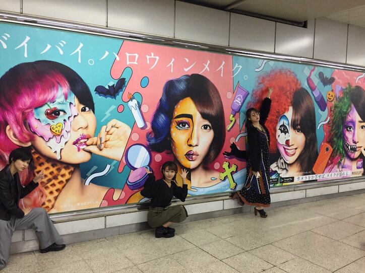 夢みるアドレセンス×KASICO ~ハロウィンメイクでJR渋谷駅山手線ホームの看板をジャック 2019/10/24 21:28 拡大する 夢みるアドレセンスが自撮り写真加工アプリ【MakeupPlus】【BeautyPlus】のイメージモデルとして起用された巨大広告が本日より渋谷駅山手線ホームをジャックしている。 夢みるアドレセンスメンバー:荻野可鈴、志田友美、小林れい、京佳がそれぞれ妖艶にかつド派手にハロウィンメイクされた広告は早朝から渋谷駅ホームを歩く人々が振り返るほどの大きなインパクトをあたえている。クリエイティブデザイナーには音楽や広告、ガールズカルチャーのクリエイティブを中心にグラフィック、映像、アニメーション、テキスタイルデザインなどを用いたグラフィカルで明快な表現を得意とするKASICOが手掛けている。 続きを読む