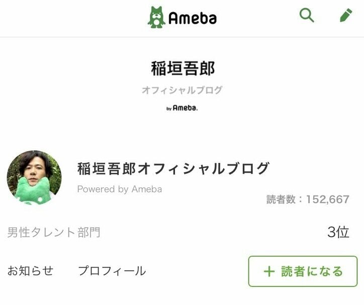稲垣吾郎の公式ブログ、初投稿される前に毎日ファンが訪問する理由とは 2019/10/24 21:28 拡大する 稲垣吾郎オフィシャルブログヘッダーより 稲垣吾郎、草なぎ剛、香取慎吾がAbema TVで72時間の完全生放送の特別番組『72時間ホンネテレビ』への出演を発表して以来、ネット上でもファンの期待が高まっている。すでにAbema TVの公式ツイッターアカウントでは彼らの幼少時の写真や組体操を行う姿などが公開され、多くのファンがリツイートしているが、実はSNSだけが応援の場ではないようだ。 例えば、稲垣吾郎が開設したアメブロでは、まだ記事は更新されていないものの、ファンが様々な機能を駆使している。わかりやすいもので例をあげると、ブログの読者登録数が9月24日の開設から約1ヶ月で15万人を突破し、アメブロ総合ランキングの上位ブロガーと引けを取らない規模となっている。10月20日時点では10万人だったため、ここ数日はデイリー1万人のペースで読者が増えている計算だ。 続きを読む