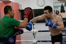 (ミット打ちでは強烈なパンチに加え、蹴り、ヒザも多用していた木村)