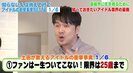 土田はいきなり「僕はアイドル好(ず)きではない」としたうえで、アイドルを見ている理由も仕事をしているからだと説明。ただし「アイドルと仕事をしていて“思うこと”は多々ある」と多少厳しめのニュアンスを漂わせた。西脇が「愛をもって教えていただけると思っていたのに!」と言うと「それはオタクの事務所の伝え方が悪いだけ」と切り返された。