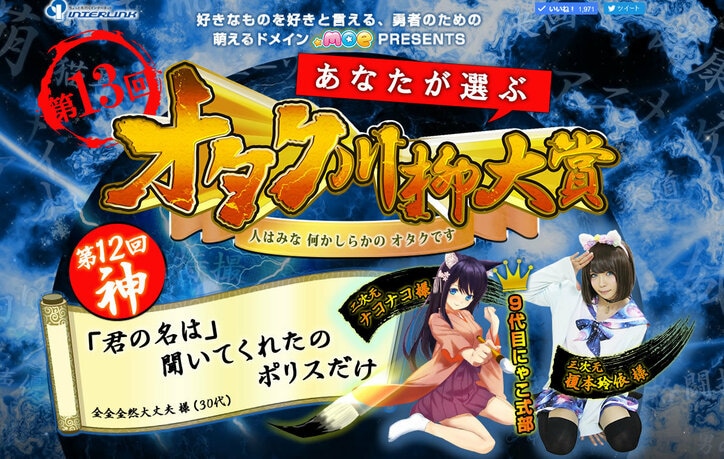 インターネットサービスプロバイダーのインターリンクが「第13回 あなたが選ぶオタク川柳大賞」(以下、オタク川柳)の応募受付を11月1日から開始した。