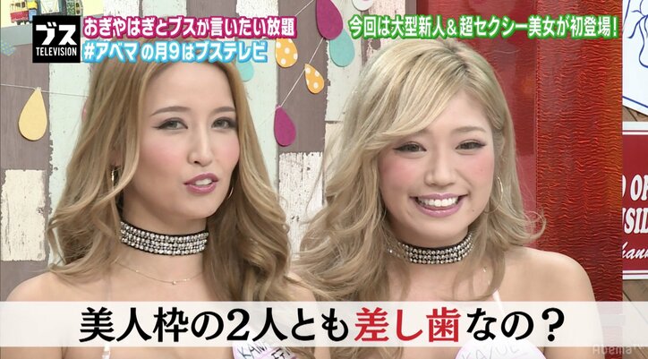 美ボディ集団・CYBERJAPAN DANCERSにブスが嫉妬「全部差し歯じゃないですか?」 2019/03/15 09:37 拡大する 6日、おぎやはぎの小木博明と矢作兼がAbemaTV(アベマTV)でMCを務めるトークバラエティ『おぎやはぎの「ブス」テレビ』(毎週月曜よる9時~)が放送され、“美人枠”として登場したCYBERJAPAN DANCERSのKANAEとKAZUEに、ブスたちが怨嗟の声を浴びせた。 小木と矢作はKANAEとKAZUEのスラリとしたスタイルや華やかな顔立ちに感心。「こういう子がいるとテンションが上がる。こういう番組がやりたい」と『ブステレビ』に不満を漏らした。 続きを読む