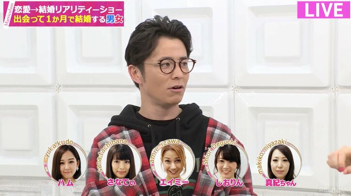 11月30日、AbemaTV(アベマTV)にて“恋愛→結婚リアリティーショー”『マリキュラム-出会って1か月で結婚する方法-(以下、マリキュラム)』(毎週木曜よる11時~)第3話が放送され、MCを務める元祖チャラ男・藤森慎吾(オリエンタルラジオ)と人気モデル泉里香を唸らせる巧妙な恋愛戦法が繰り広げられた。