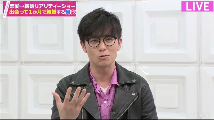 12月7日、AbemaTV(アベマTV)にて“恋愛→結婚リアリティーショー”『マリキュラム-1か月で結婚する方法-(以下、マリキュラム)』(毎週木曜よる11時~)第4話が放送され、MCの藤森慎吾(オリエンタルラジオ)が「元カノの話やめろ~!」と大きくツッコむ一幕があった。