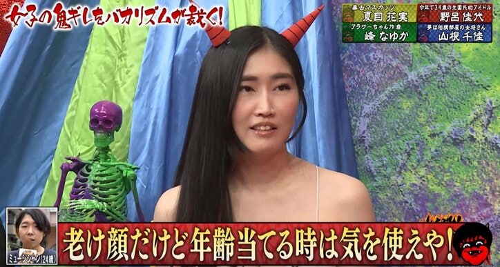 しかし、昔から童顔に見られがちだという野呂は「私は34歳で(峰よりも)1歳年上ですよね。やっぱり(峰は)老けていると思う」と指摘すると、バカリズムは「同じくらいだよ」とツッコミ。野呂が「同じですか……」とつぶやくと、峰が「なんでそんなに納得いかなそうなんですか」と苦笑した。