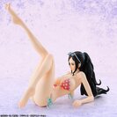 Ver.BB(bathing beauty =水着の美女)シリーズ第14弾となる今回のフィギュアは、ニコ・ロビンがピンク地に水玉模様のビキニ姿でVer.BBシリーズ初の“仰向け”になり、美脚を空に向け、くつろぐ姿をフィギュア化したもので、ポニーテールに髪を結わえ、柔らかな表情を浮かべる姿は妖艶な雰囲気を醸し出している。
