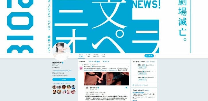 前田敦子、同期・峯岸みなみと久々再会「今年の総括をしました(笑)」 2019/10/24 21:28 拡大する 峯岸みなみ公式Twitterよりスクリーンショット 女優の前田敦子が12月21日、アイドルグループ・AKB48の峯岸みなみとの2ショットを披露。久々となるAKB48一期生同士の対面に、ファンからは喜びの声が相次いでいる。 およそ1年ぶりのあっちゃーん!今年の総括をしました(笑)次は、1年以内に会えますように... pic.twitter.com/hf2y2xcBRp これは同日、峯岸が自身の公式twitterに投稿したもので、この中で彼女は、前田との2ショットを公開しつつ、「およそ1年ぶりのあっちゃーん!今年の総括をしました(笑)次は、1年以内に会えますように...」と、実に1年ぶりとなる“同期対面”を果たしたことを報告。 続きを読む