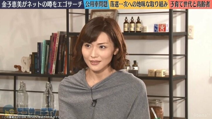 1月5日にAbemaTV(アベマTV)で放送された『エゴサーチTV』に、元衆議院議員の宮崎謙介と金子恵美夫妻が出演。金子が、公用車を育児のために私的利用していたと報道された件について言及した。