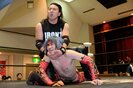 試合前半、目立ったのはFUMAの攻勢。イサミのトペをイスで迎撃して流血に追い込み、場外ではイスを積んだ上にアバランシュ・ホールドで投げつける。昨年、ヘヴィメタルのライブとコラボした自主興行『FUMA FEST』を開催、メインでデスマッチのカリスマ・葛西純と対戦したFUMA。それ以降、イサミに言わせれば「リング上の顔つきが変わった」。レスラー人生における大きなターニングポイントを経験した、ということだ。このタイトルマッチでも、FUMAの闘いぶりは自信に満ちていた。