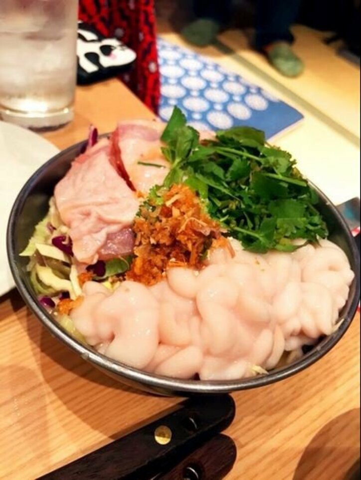 白子やアンキモ、メキシカンなどのもんじゃが出るのだが、江上は「見た目のインパクトすごい そして。。どれも美味しすぎる~ 最初に、うす~くのばした生地でお煎餅を作ってくれるのですが。。そこから激うま 目の前で作ってもらい、それを眺めながら飲むお酒の美味しいこと」と同店のもんじゃに感動している。