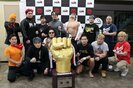 (昨年優勝のイサミ(左)もトロフィーの大きさにあらためて驚愕。今年は宇藤と組んでの参戦だ)