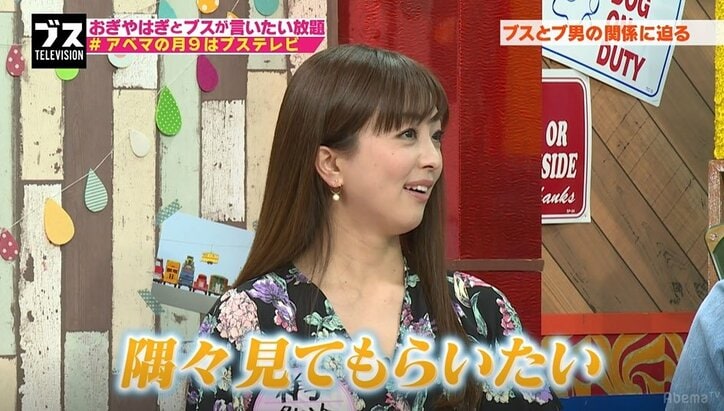 謎の美女・祥子、性癖を赤裸々に告白「臨機応変に対応できます」 2019/03/15 09:37 拡大する 3月5日、おぎやはぎの小木博明と矢作兼がMCを務めるトークバラエティ『おぎやはぎの「ブス」テレビ』#57(毎週月曜よる9時~)がAbemaTV(アベマTV)にて放送。“謎の美女”ことタレントの祥子がゲスト出演し、自身の性癖を明らかにした。 “ブス枠”の女性ゲストたちが性事情を語る中、祥子は「よく電気消せば、ブスでもいけるって言いません?」と問いかけた。実際に“ブス枠”の出演者は、電気を消す派が多いとのこと。しかし、“美人枠”ゲストの祥子は異なるようで、小木が「祥子さんはそんなことないでしょ」と言うと、「隅々まで見てもらいたい」と自信満々にうなずき、“ブス枠”の女性陣を驚かせた。 続きを読む