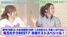 オープニングトークでは、生徒各自が、最下位だった場合の罰ゲームを考えることになり、山地はギャグを、Nikiはデコピン&変顔、岡田は番組締めの挨拶、菊地はデコピン&番組締めの挨拶をすることに。第1問目は、お笑いコンビ・麒麟の川島明が教えてくれた“関西番組対策”講座から「○○を見てビビるな!」とあり、山地は「台本」、Nikiは「関西弁」、岡田は「ハイヒールりんごさん&ももこさん」、菊地は「和柄」と回答。自信がなさそうな様子の生徒たちだが、この中に正解はあるのか?