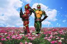 新たに解禁となったビジュアルは、仮面ライダーアマゾンアルファがピースサインを決め、仮面ライダーアマゾンオメガがアルファの肩に腕をかける、なんとも仲良しな雰囲気が漂う1枚。