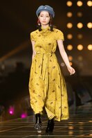 鮮やかな色味のワンピースにベレー帽を合わせた姿でランウェイを堂々闊歩した今泉。笑顔を封印し、クールな表情でオーディエンスを魅了した。